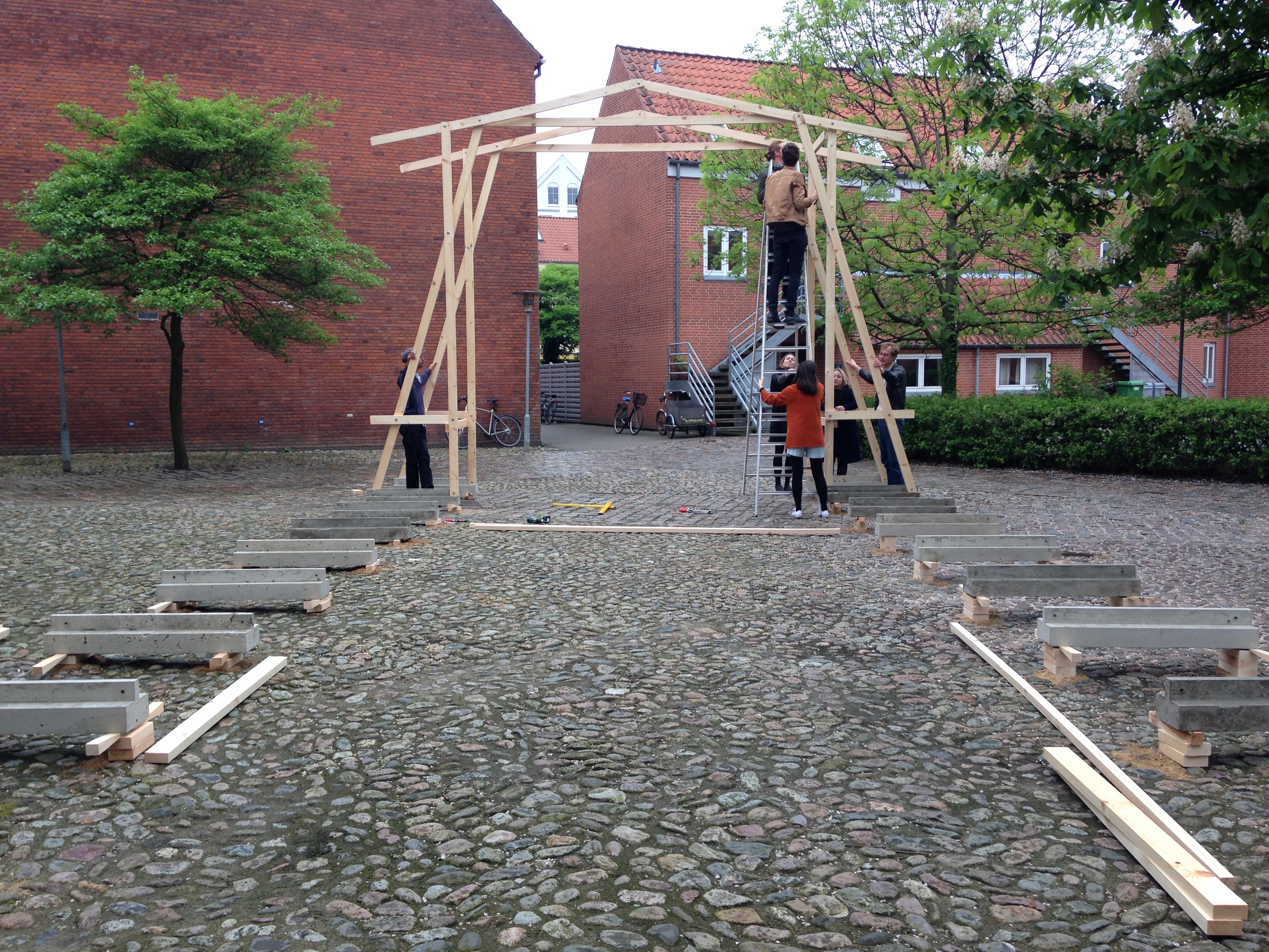 The shelter will eventually be donated to the Aarhus harbor. The structure is constructed mainly with bolts and is therefor easy to disassamble in the summer when to boat takes to the water.